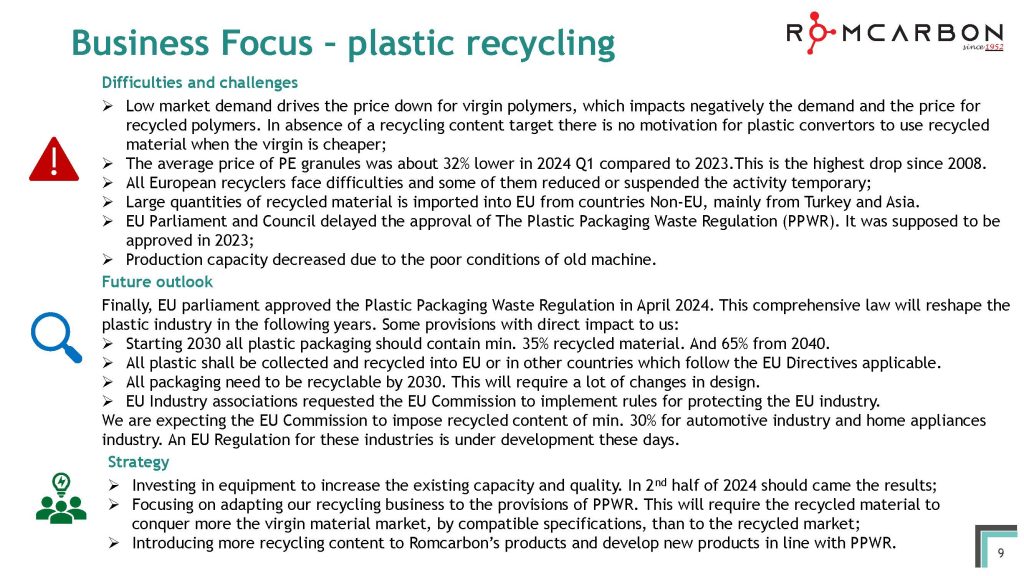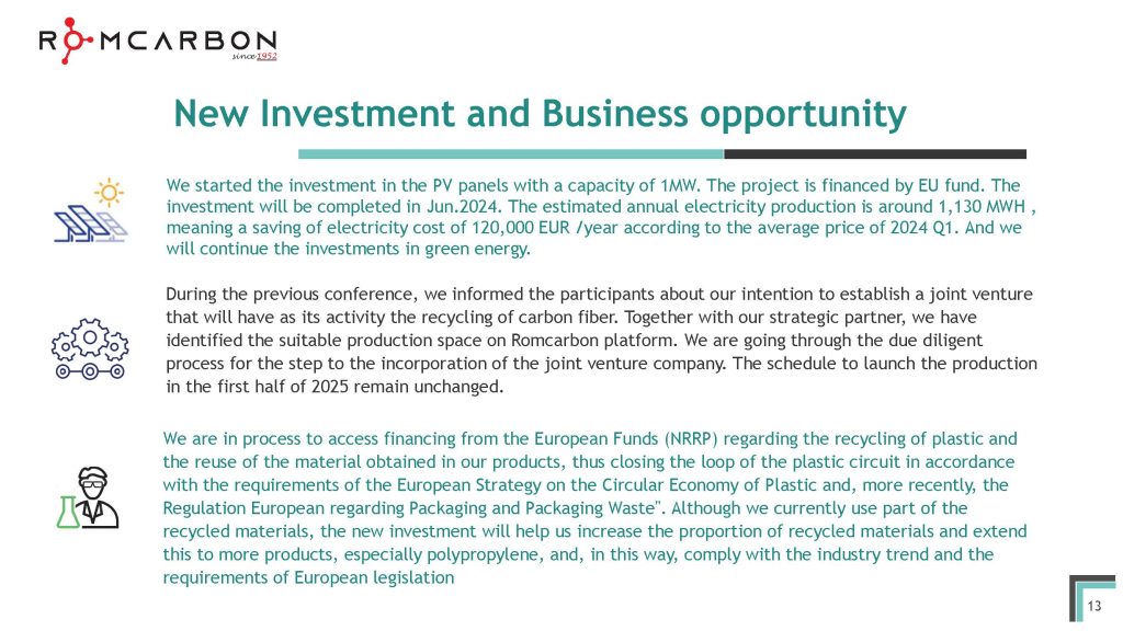 On Friday, 17th of May, 2024, between 10:30-12:00, local time, the teleconference regarding Romcarbon financial results for Q1 2024.