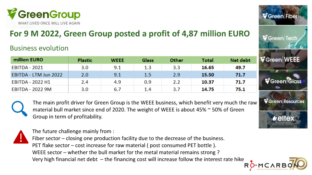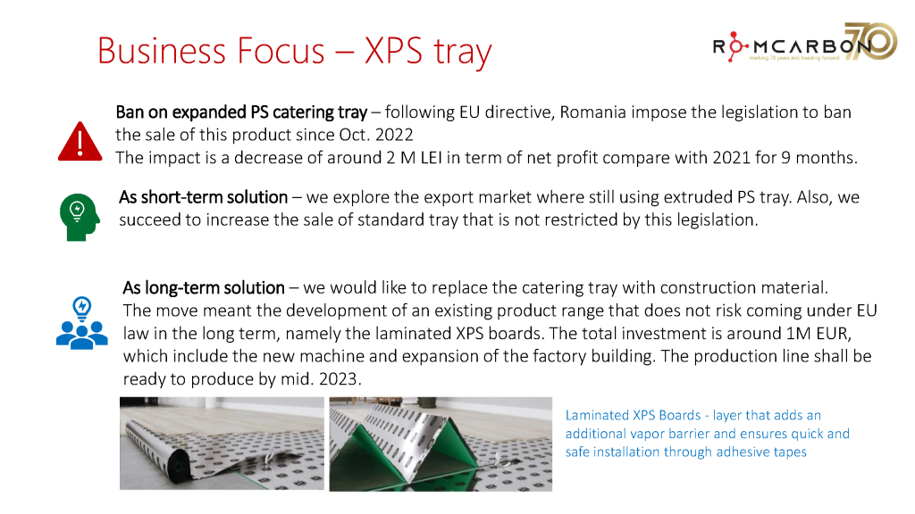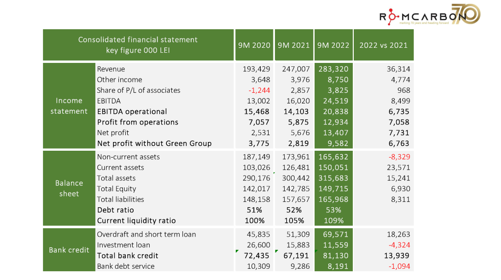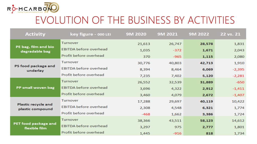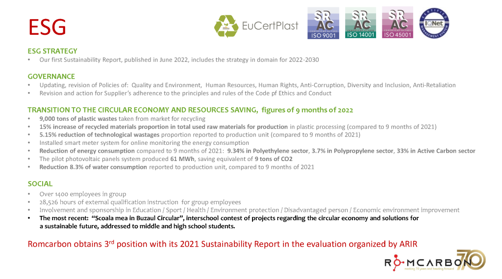 Friday, 18th of November, 2022, between 10:30-11:50, local time, the teleconference regarding Romcarbon financial results for 9 Months of 2022.
